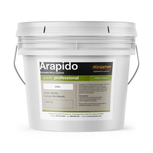 - Customizable Finishes: Create endless design possibilities with Arapido’s ability to be integrally colored, stained, or dyed. The choice from smooth, polished surfaces to textured, artistic patterns is yours.