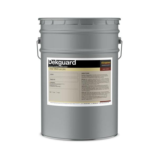 Dekguard is a non-yellowing, low gloss, siloxane modified methyl methacrylate sealer for concrete surfaces. Its low viscosity allows better penetration over concrete for excellent protection. The unique formulation of Dekguard provides superior resistance to de-icing salts, saltwater pool systems, rain, sleet, and snow as compared to other acrylic sealers.