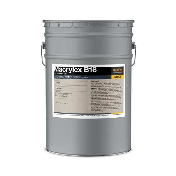 Macrylex B18 is a 100% reactive methyl methacrylate binder resin and body coat for self-leveling (SL), broadcasted, and troweled mortar systems. Macrylex B18 resin is ideal for decorative troweled broadcast quartz floors and industrial surfacing, subject to heavy loads and traffic. Macrylex