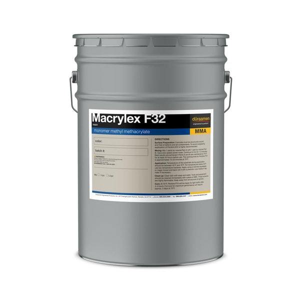 Macrylex F32 is a higher viscosity, 100% reactive, flexible methyl methacrylate resin used as a crack isolation or waterproofing membrane under various Macrylex Systems. Macrylex F32 resists cracking caused by horizontal substrate movement, providing a crack resistant, resilient surface. It offers stress-relieving properties for floor slabs showing movement and/or vibration. It is excellent for use as an intermediate layer in loading docks and ramps, equipment rooms, large animal rooms, activity rooms, automotive repair, food industry, dairies, beverage industry, and numerous other applications.