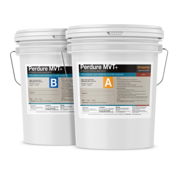 Perdure MVT+ is a two-component phenalkamine based epoxy coating designed to act as a moisture vapor barrier over concrete substrates. In addition to acting as a vapor barrier, Perdure MVT+ exhibits excellent adhesion to oily concrete surfaces. The long aliphatic chain of the curing agent results in excellent water resistance and exceptionally low permeability. The low permeability of the costing helps prevent blisters from being formed in the floor coating when water vapor present in the concrete rises to the surface. Perdure MVT+ is suitable as an oil-resistant moisture vapor barrier in automotive shops, service centers, warehouses, restaurants, etc.