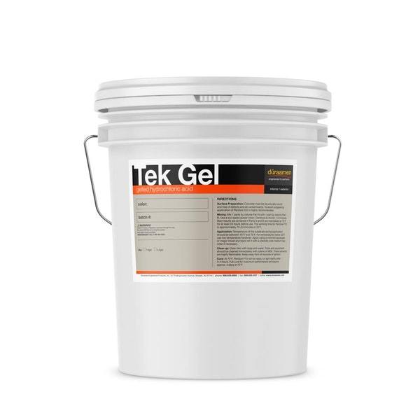 Tek Gel is gelled hydrochloric (muriatic) acid used to clean and induce surface profile on concrete surfaces. Of all the cleaning and profiling methods, Tek Gel profiling is one of the safest, environmentally friendly, and least expensive methods. Tek Gel will remove rust, mold, mildew, efflorescence, and calcium build-up, grease and oil, toxic material (i.e., PCBs, blood, animal/human waste), grease, and oil. At the same time, it will profile and open up the concrete surface.